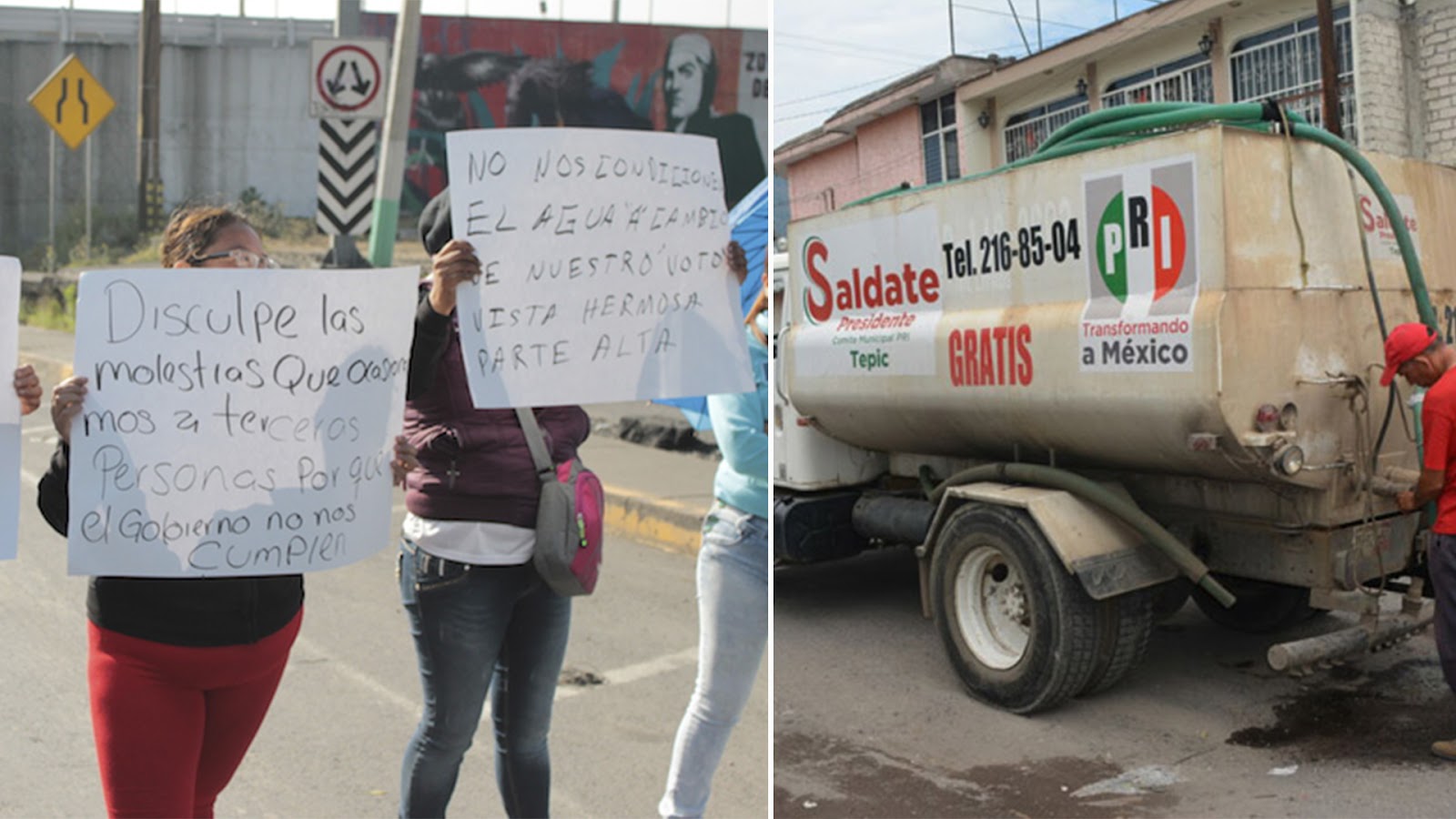 “Tienes que ir con las responsables seccionales del PRI para que ellas hagan la gestión, para que sólo a través de ellas se tenga acceso a las pipas. Tienes que irles a dejar una copia de tu credencial de elector y anotarte en el listado de promovidos del voto para que sólo por esa vía pueda pasar la pipa por tu calle”, acusó.