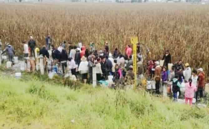 Decenas de vecinos de la comunidad de San Cayetano acudieron con tambos y cubetas para llevarse el combustible que se derramaba de una toma clandestina en los ductos de Petróleos Mexicano utilizada por un grupo de huachicoleros.