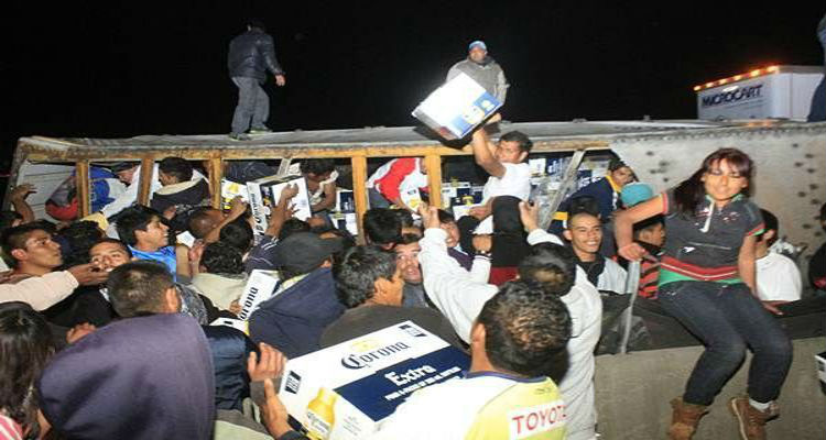 El camión se volcó aproximadamente a las 3:00 de la madrugada pero desde las primeras horas de hoy 26 de noviembre la gente comenzó a llegar para llevarse la cerveza en bolsas y cajas, mientras que los más abusivos llegaron con vehículos especialmente para llenarlos de las cajas de cerveza.