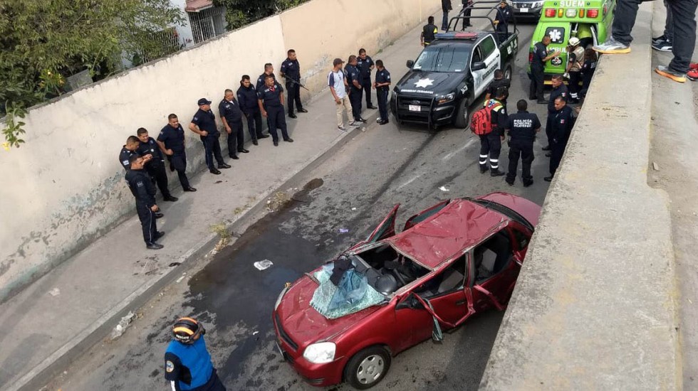 La tarde de este miércoles, un hombre cayó con todo y su auto del puente vehicular de Venta de Carpio, en Ecatepec.