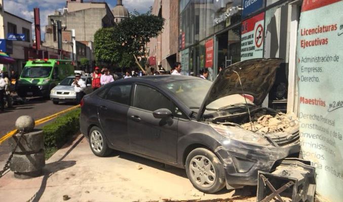 Un vehículo se estrelló contra una universidad en el centro de la capital del Estado de México dejando daños materiales y sin personas heridas de gravedad.