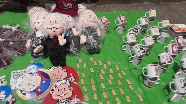 Los peluches, de unos 30 centímetros, con dientes grandes y cabello blanco se ofertan por docena en los mítines de AMLO, en donde también hay tazas, calcomanías y otros productos para los fans del “Peje”.