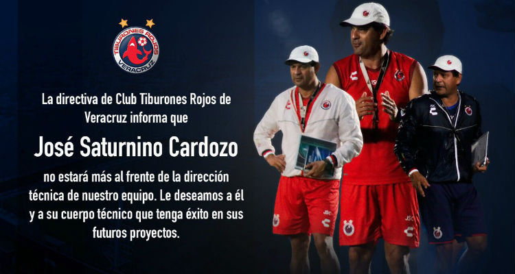 “La directiva de los Tiburones Rojos de Veracruz informa que José Saturnino Cardozo deja de ser, a partir de este momento, el director técnico del conjunto escualo, esto luego de los resultados obtenidos en el Torneo Apertura 2017 de la Liga MX”, informó el club.