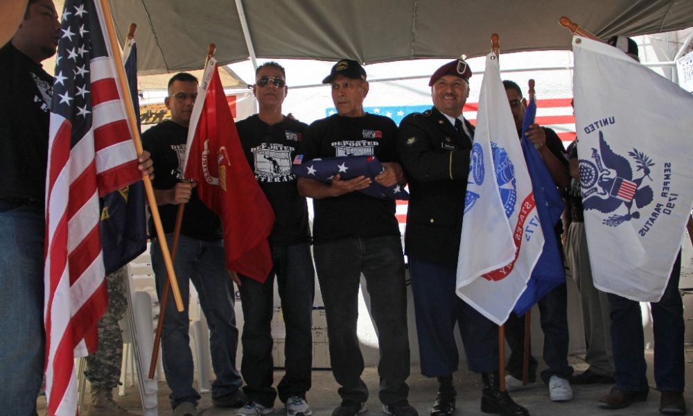 Un grupo de veteranos de guerra deportados protestaron hoy por su situación con una marcha en el cruce fronterizo de San Ysidro, que conecta San Diego (California) con Tijuana (México), con motivo de la celebración en Estados Unidos del Día de la Independencia.