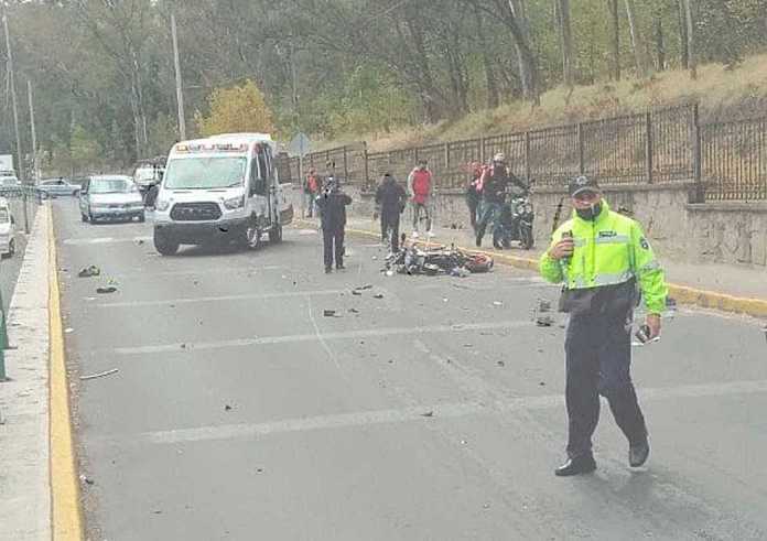 Esta tarde se reportó un choque entre una motocicleta y una camioneta en la entrada a la colonia a San Juan Totoltepec en Naucalpan de Juárez, dónde se reportó a dos ladrones atropellados