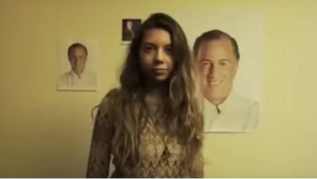 En el video se ve a la joven tener varias imágenes del tres veces candidato presidencial pegadas a la pared, luego las rompe y las cambia por unas del candidato del PRI.