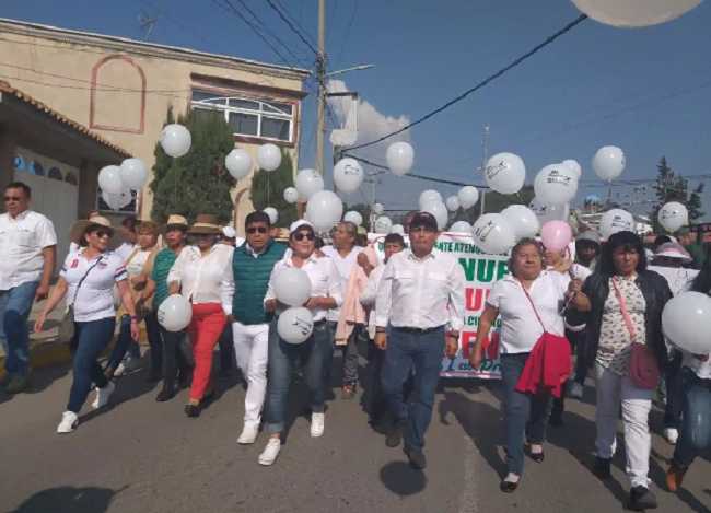 Las y los manifestantes, que visten en su mayoría de blanco, partieron de San Cristóbal Nexquipayac, un pueblo de Atenco, y esperan llegar hasta Texcoco, donde se prevé un mitin.