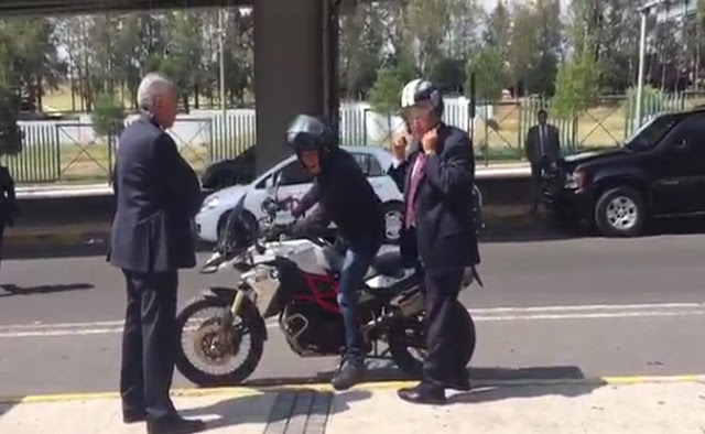 VIDEO: AMLO llega en motocicleta al evento de la CIRT