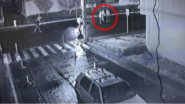 En el clip publicado en Facebook, se observa a un automóvil blanco que circula en actitud sospechosa por la vialidad y luego de unos minutos da la vuelta y se detiene, tras lo cual descienden de él 4 sujetos.