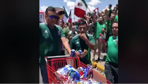 Un joven fue captado conduciendo el vehículo en el que los fans depositaban sus envases de cerveza y botanas, pero también los que encontraban a su paso. “Estamos paseando el carrito para que le echen la basura y que no hagan desmadre”, comentó.