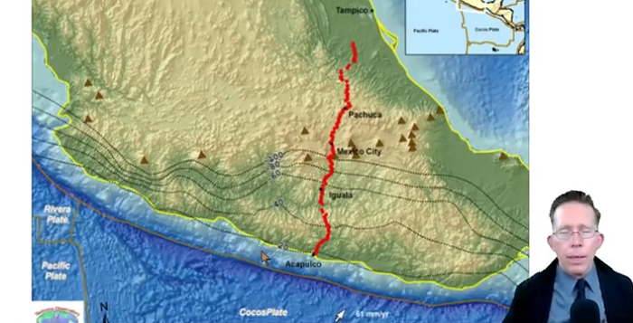 Además, afirma que debido a un gran hoyo coronario solar, las vibraciones terrestres han aumentado provocadas por esta actividad solar. el periodista señala que México ya no dejará de temblar nunca más y que conforme pase el tiempo, las placas tectónicas se volverán más frágiles, incluso a partir del minuto 8:55, comienza a hacer la analogía de que las placas ya están como una tortilla dura y que hizo “crack”.