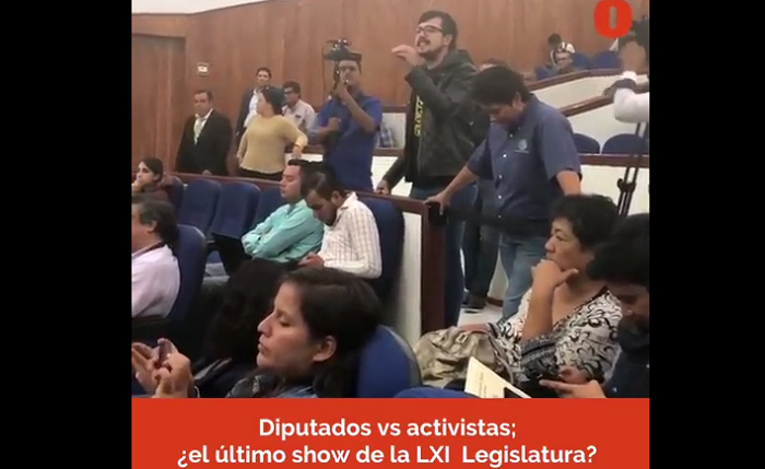 Los diputados Sergio Desfassiux Cabello y José Luis Romero Calzada discutieron este día con activistas que los criticaron por la aprobación de los dictámenes de la Auditoría Superior del Estado sobre las cuentas públicas 2017.
