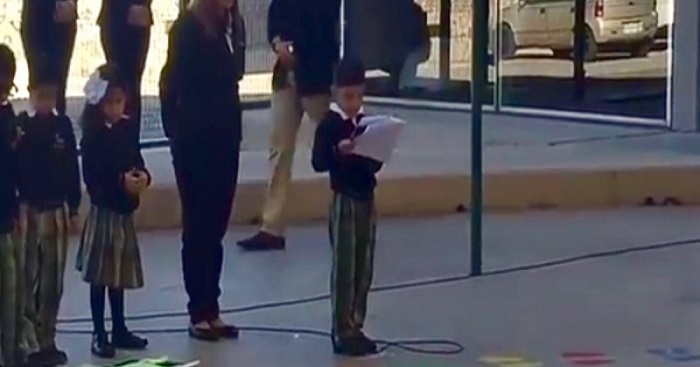 “Y recuerden, papás, este 1 de julio voten por López Obrador”, concluyó un niño que participó en una ceremonia escolar en México. El curioso momento causó aplausos y risas entre los presentes.