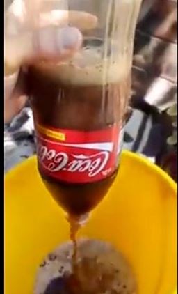 Las imágenes han indignado a miles de personas en Facebook, el hombre echa la coca cola en un recipiente y para su sorpresa encuentra un pequeño ratón en el interior.