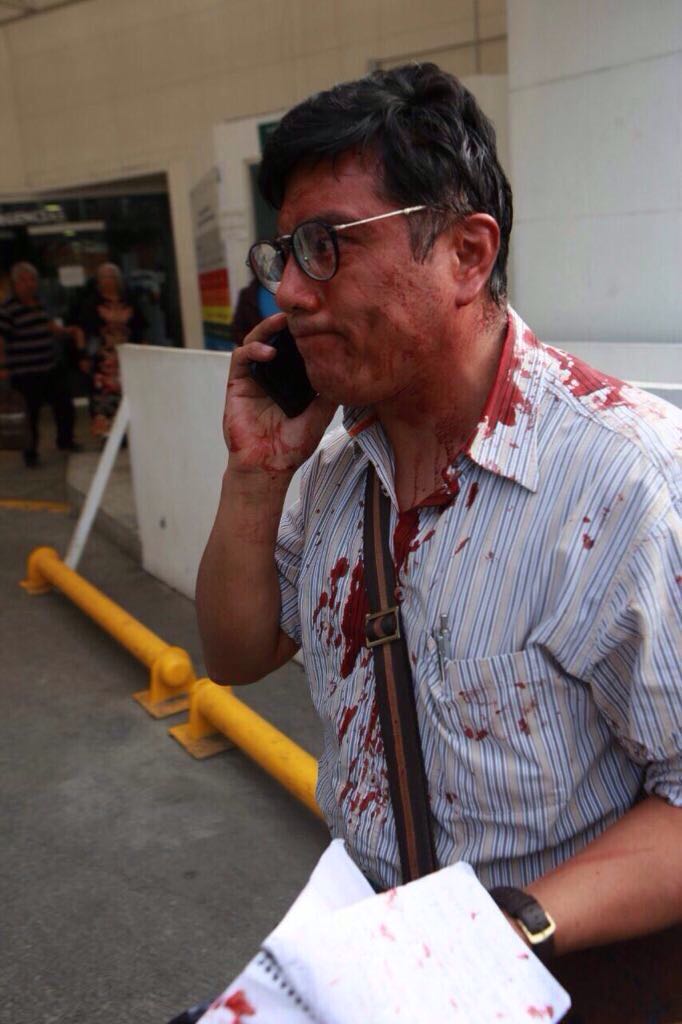 Pero el reportero de La Jornada, Ángel Bolaños, no corrió con suerte y fue golpeado en la cabeza.