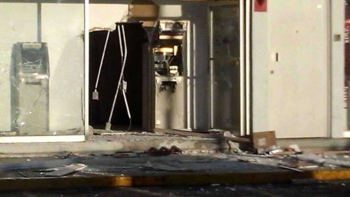 Una denuncia ciudadana afirmó que cerca de las 3:00 horas de hoy, el grupo de delincuentes arribó con varios vehículos, mismos que usaron para jalar y robar el cajero HSBC, el cual desprendieron completamente.