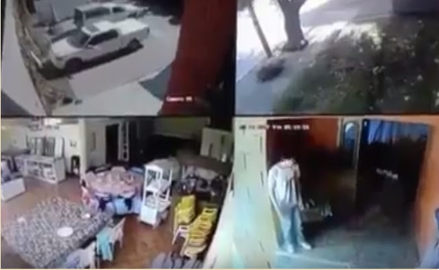 Los videos muestras como los atacantes abordaron a los responsables del local antes que pudieran ingresar, los pusieron contra la pared y hurtaron las cosas de valor.