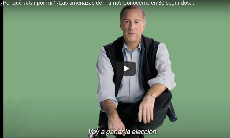 El promocional, pautado ante el Instituto Nacional Electoral (iNE) como “Por qué votaría por ti”, muestra a Meade Kuribreña respondiendo varias preguntas de una voz en off, entre ellas algunas referentes a Donald Trump, su opinión de Andrés Manuel López Obrador y su posición en las encuestas.