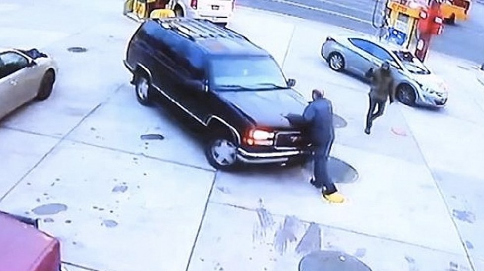Las imágenes de vigilancia capturaron el momento en que Dagdeviren se colocó frente a la camioneta GMC Yukon para impedir que el hombre se fuera sin pagar.