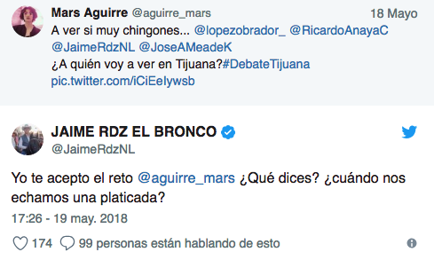 ¿A quién voy a ver en Tijuana?#DebateTijuana pic.twitter.com/iCiEeIywsb— Mars Aguirre (@aguirre_mars) 18 de mayo de 2018