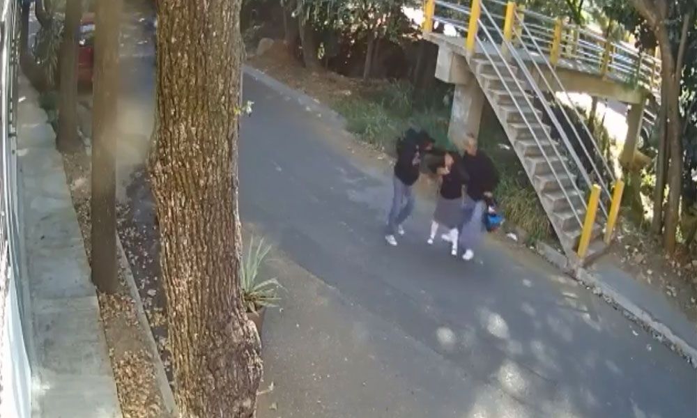 En la grabación se aprecia cómo una de las estudiantes, es golpeada en varias ocasiones para que suelte su mochila y pertenencias, los asaltantes planean llevarse los celulares de otros jóvenes.