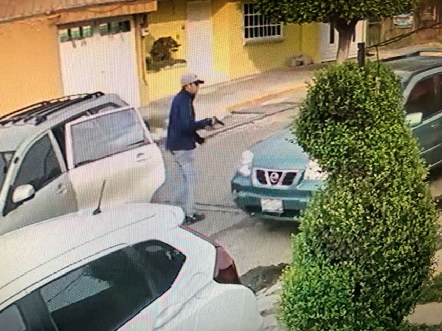 Este hombre bajó de otra camioneta modelo Avanza, color Dorado y se acercó al vehículo de la víctima, una Nissan X-Trail modelo 2003 , con placas NBU 2646, del estado de mexico.