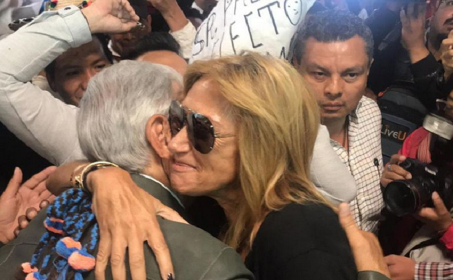 El pasado 16 de octubre Adela Micha se incorporó al contingente que esperaba al tabasqueño en el aeropuerto de Durango.