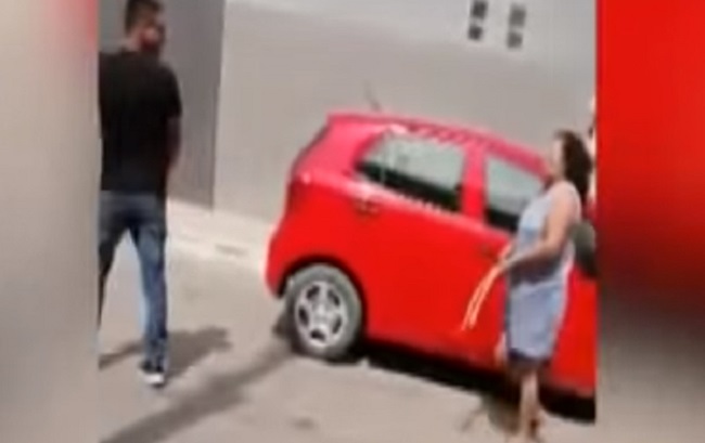 En las imágenes se puede observar el momento en que la madre confronta a su hijo, quien estaba acompañado por su presunta amante, una mujer de origen venezolano.