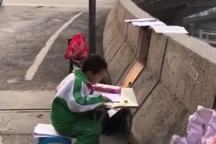La historia se dio a conocer por Pear Video, que filmó al pequeño en el lugar, un paso elevado en la ciudad de Guiyang, para aprovechar toda la luz posible.
