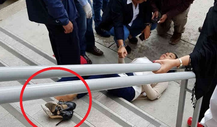 El suelo de los escalones es resbaloso, según reportaron. Por tanto, la dama no pudo mantener el equilibrio al intentar bajar con zapatos de tacón y resbaló de las escaleras.