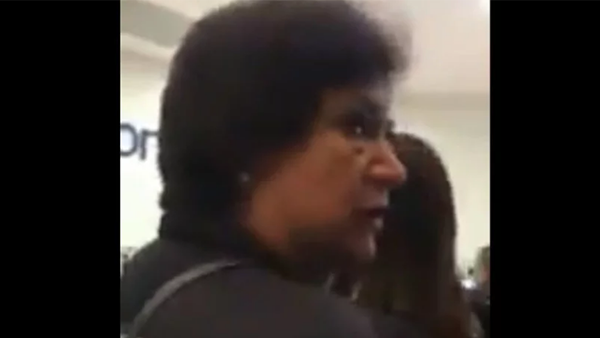 En las imágenes se observa el momento en que la mujer insulta, en repetidas ocasiones, al joven que se encuentra adelante suyo en la fila, a quien le reclama haberla sacado. Incluso, lo empuja y golpea en la cabeza.