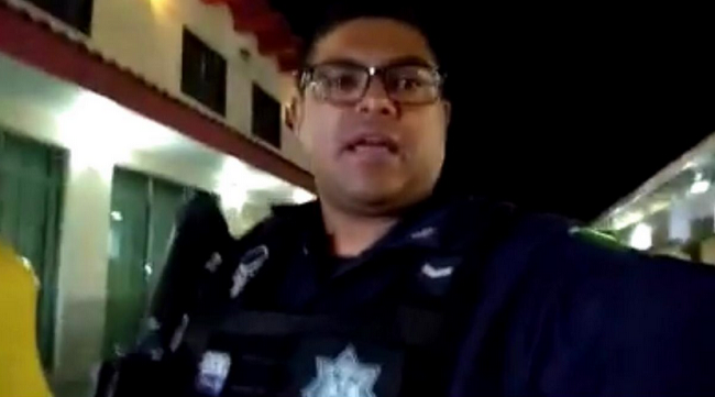 En el clip, el uniformado se queja porque una vez llegados a la central de autobuses, sus colegas deben ser llevados en patrullas a la base donde operarán, exigiendo se les envíe algún tipo de transporte privado.