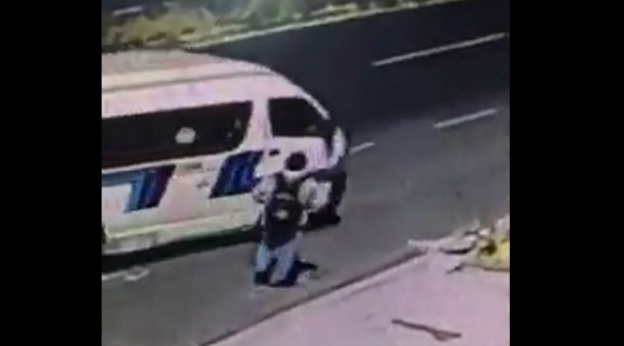 En el video se observa al hombre hacer la parada a una combi y al dirigirse al transporte cae en lo que sería una coladera abierta.