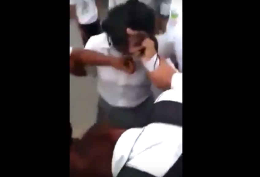 En el video se observa el momento en que la policía tomó del cabello a la joven, una estudiante de secundaria, quien aparentemente estaba filmando a la oficial luego de que esta detuviera a un motociclista, acusado de haber agredido a la uniformada con su vehículo, de acuerdo con testigos en el lugar.