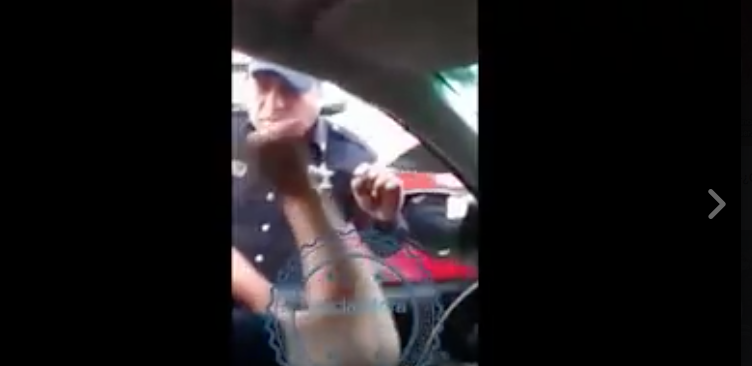 Policía de Naucalpan intenta detener a conductor por traer una gorra con el Escudo de México.