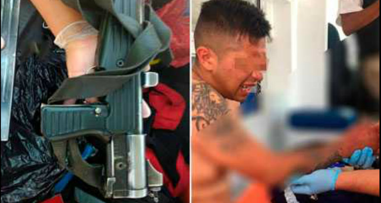 El funcionario detalló que fue el propio comandante Francisco Villagómez quien se percató que usuarios de una combi perteneciente a la ruta 44 que corre de Villa de las Flores Coacalco al metro Moctezuma le señalaban que un sujeto les despojaba de sus pertenencias, motivo por el cual decidió junto con su compañero darle alcance al vehículo, interceptándolo metros más adelante, momento en que el presunto delincuente descendió a toda velocidad para tratar de cruzar el puente peatonal y escapar, sin embargo, al sentirse cercado por los elementos policíacos disparó contra ellos valiéndose de una sub ametralladora marca Mendoza calibre 9 milímetros.