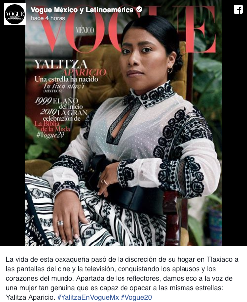 Como parte de la promoción del recién estrenado filme de Alfonso Cuarón, Yalitza Aparicio es hoy quien viste la portada de la revista más importante de moda, Vogue México y Latinoamérica.