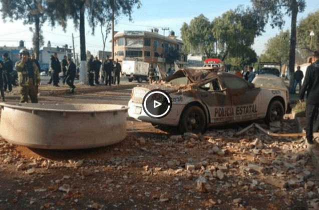 Mencionaron que estalló una caldera, cuya tapa de más de un metro de diámetro voló varios metros para caer sobre una patrulla de la policía estatal y luego sobre el asfalto, además de que causó un agujero en la pared.