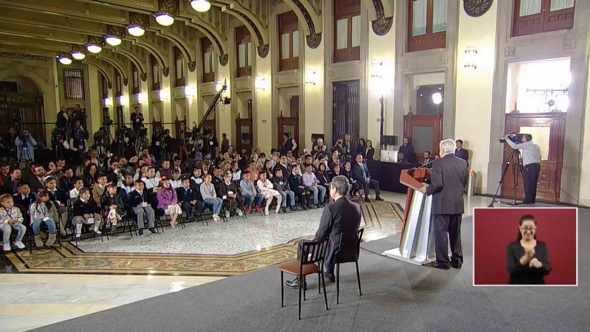 Desde las 06:00 horas los menores llegaron a la sede del Poder Ejecutivo Federal en camionetas. Luego ingresaron al salón Tesorería de Palacio Nacional y ocuparon las dos primeras filas que por lo habitual ocupan los representantes de los medios de combinación.