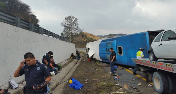 La volcadura de un autobús de pasajeros sobre la carretera Acapulco–Pinotepa Nacional, a la altura de la localidad de Barajillas, en el municipio de Cuajinicuilapa, dejó una persona muerta y diez más lesionadas.
