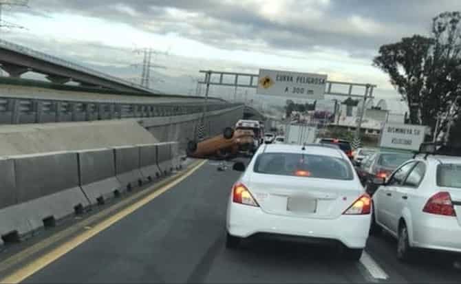 La mañana de ayer se registró la volcadura de un automóvil particular sobre la carretera México -Toluca, a la altura de Lerma. Se reportan personas lesionadas.