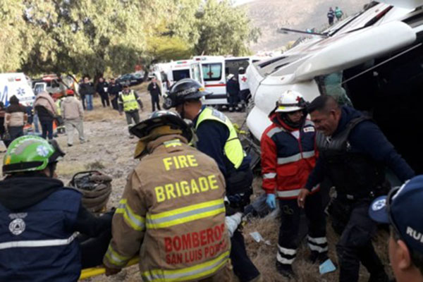 SAN LUIS POTOSÍ.- Este jueves se registró un accidente  de un autobús que dejó como saldo cinco personas muertas y 16 heridos.