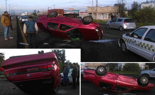 Un descuido provocó que el conductor de un automóvil volcara sobre la carretera Toluca-Naucalpan. El saldo fue de dos personas lesionadas quienes fueron atendidos en el sitio del percance.
