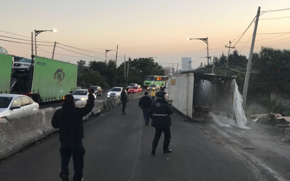 Servicios de emergencia laboran en el lugar y personal de la #SSPCDMX agiliza la vialidad. — OVIALCDMX (@OVIALCDMX) 10 de noviembre de 2017 Debido a la volcadura, que ocurrió a la altura del kilómetro 17, el tráiler tiró la mercancía que transportaba.