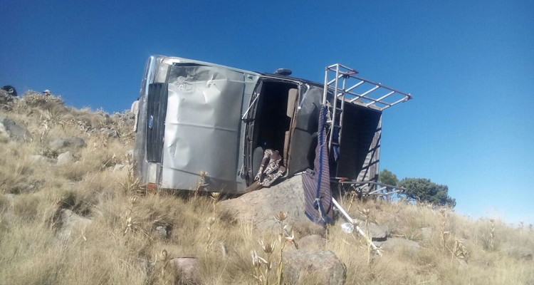 Una camioneta pick up gris modelo 88 que llevaba 28 personas en la batea al Nevado de Toluca, por la velocidad que llevaba, se voltea en una curva, dejando a varios lesionados.