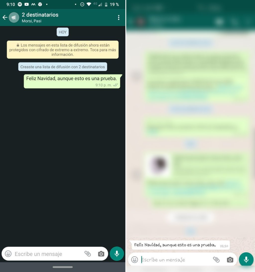 Presiona el botón de enviar y este mensaje se enviará en un chat individual a cada usuario, de hecho si ya tienes un chat con alguno de ellos aparecerá en en este, por lo que pensará que lo escribiste de forma personal, así que piensa bien cómo redactar dicho mensaje.