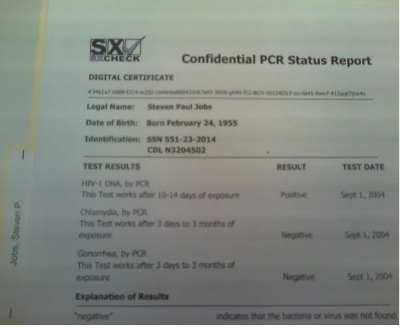 Uno de los archivos desclasificados tendría que ver con el fundador de Apple, Steve Jobs, quien presuntamente fue diagnosticado VIH el 1 septiembre de 2004.